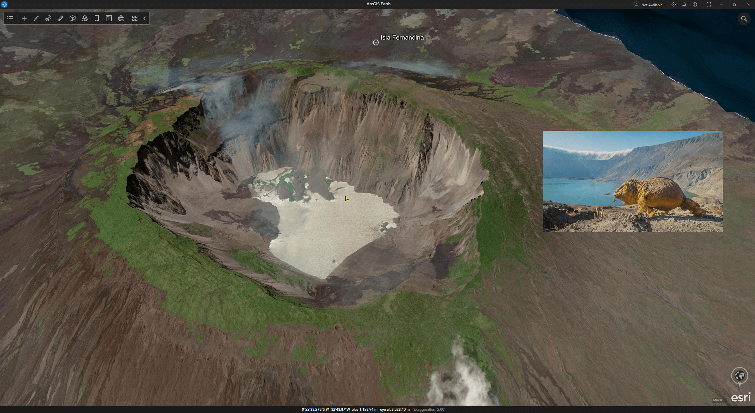 Finding this volcano’s location is simple, but if you want to view it from a “God’s eye view” or a “drone perspective,” ArcGIS Earth is an excellent choice. It’s free to download, beginner-friendly, and even suitable for kids.