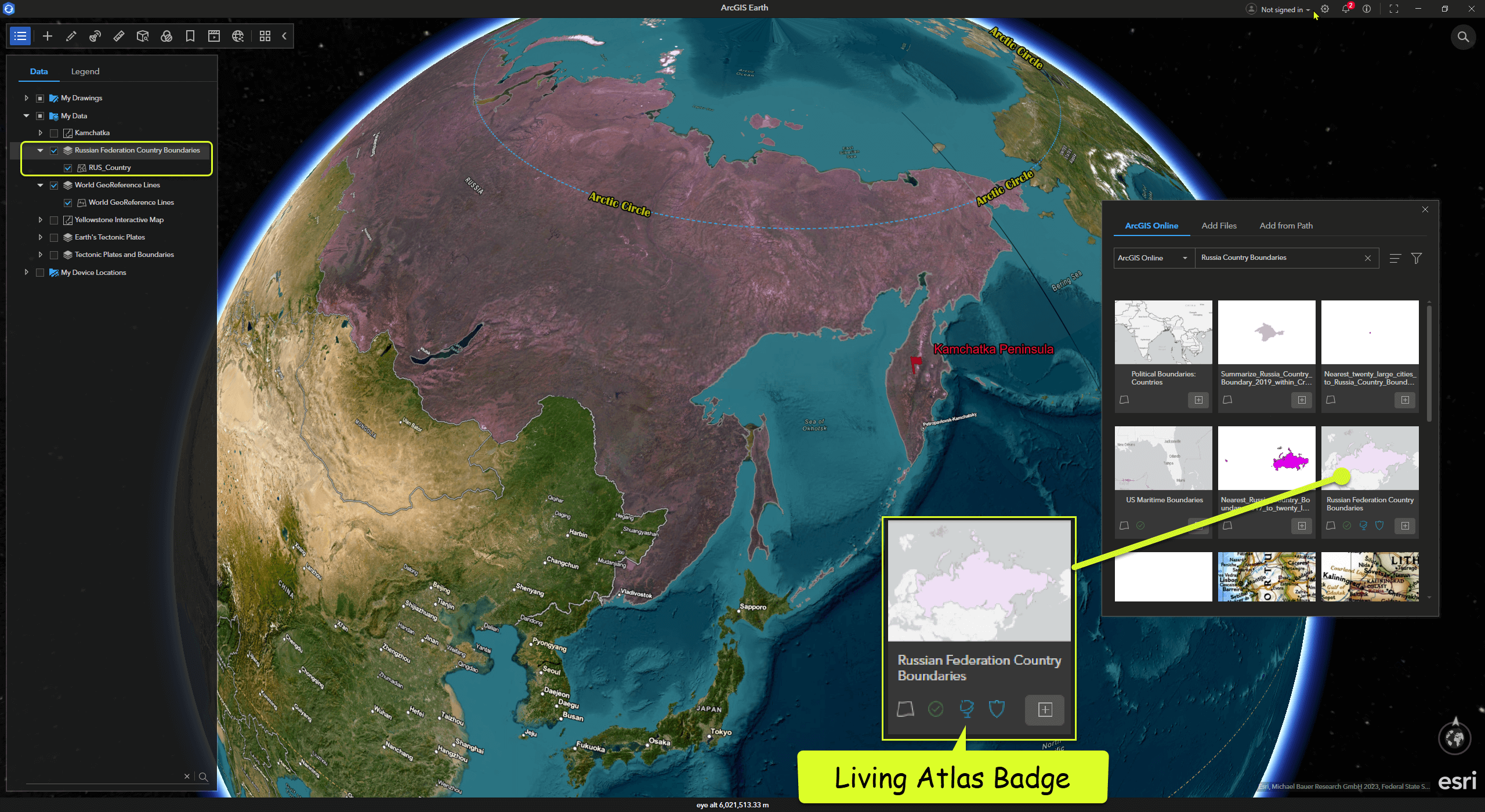 You can also find Russia’s national boundary data in ArcGIS Online - Russian Country Boundaries. A globe icon indicates data sourced from Living Atlas, which often signifies high-quality data.